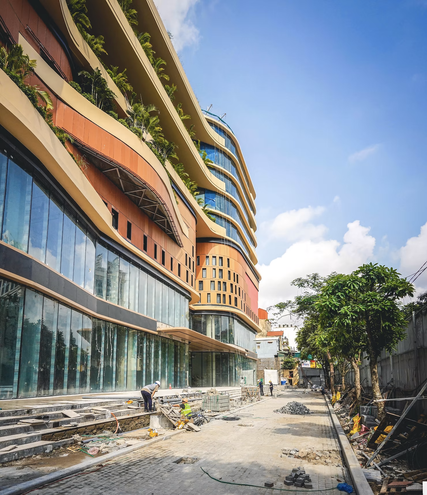 The Terracotta-tiled façade of Tien Bo Plaza, a key design highlight of the development, has been installed on the lower levels. The contour of the façade with its warm tones and traditional texture is reminiscent of the old Hanoi transformed into contemporary setting with vertical landscape and open green spaces.